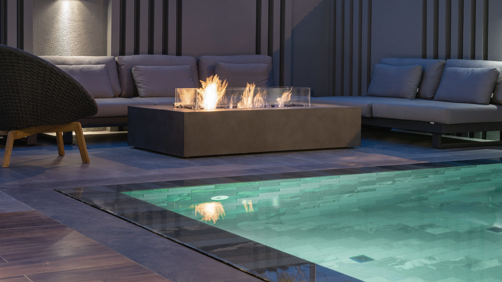 Tiled with Indonesian stone, our private infinity pool is built for cooling off in style. The water may be chilled or heated to your preference and the built-in jacuzzi is ideal for releasing the stress of the day. Please note to take special care of children around the outdoor area, as the pool is not fenced off. The depth of the pool ranges from 90cm in the shallow side to 120cm at the deep end.